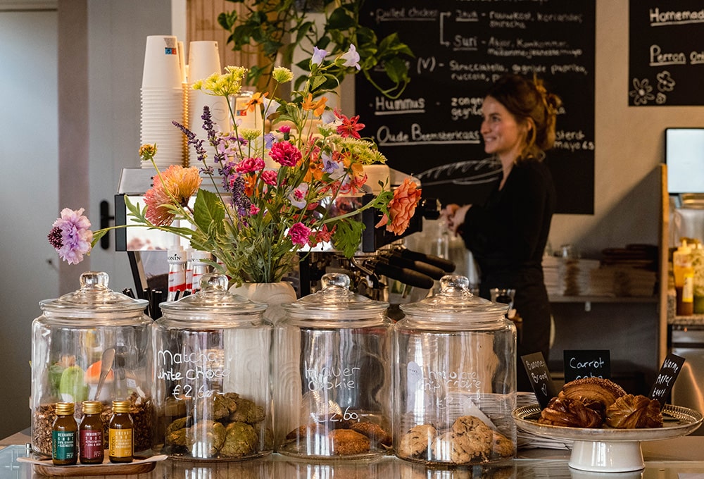 Sterre Volkers runt Café Perron samen met haar partner Daniel. Twee maanden voor ons gesprek opende ze de deuren van hun eigen zaak, de vervulling van een langgekoesterde droom. “We wilden altijd al iets samen oprichten,” vertelt Sterre. Maar de weg erheen was niet rechtlijnig.